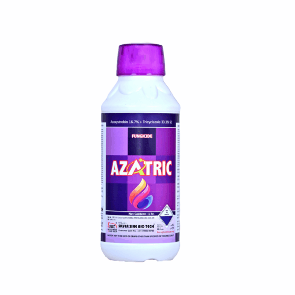 DESCRIPTION: AZATRIC is a dual-action fungicide combining the power of Azoxystrobin and Tricyclazole for effective management of blast and sheath blight diseases in paddy. It provides both systemic and translaminar protection, ensuring comprehensive disease control and improved crop quality.