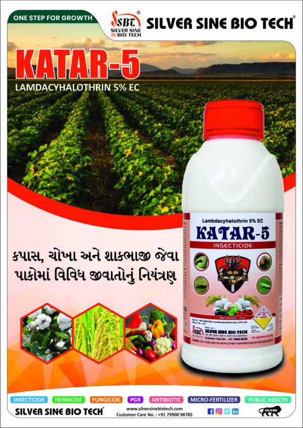 DESCRIPTION: KATAR – 5 (LAMBDA CYHALOTHRIN 5% EC) is Broad-spectrum Insecticide. It Belongs To Pyrethroid Group Of Insecticides.