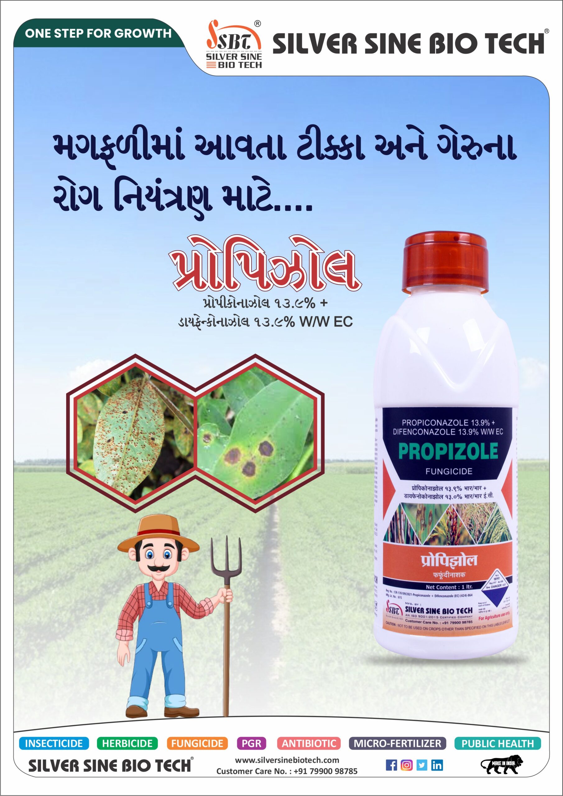 DESCRIPTION: PROPIZOLE (PROPICONAZOLE 13.9% + DIFENCONAZOLE 13.9% EC) It is a mixture of triazole fungicides recommended for the control of sheath blight and dirty panicle disease in paddy.