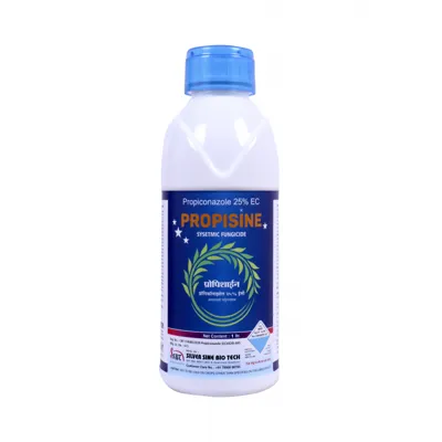DESCRIPTION: PROPISINE (PROPICONAZOLE 25% EC) belongs to the triazole group of fungicides. PROPISINE is recommended on several crops like Groundnut, Paddy, Wheat, and Soybean on Rust bunt, Sheath blight, and Leaf spot disease. PROPISINE is also having growth regulatory effects and impart the shining effect on grains of cereal crops.