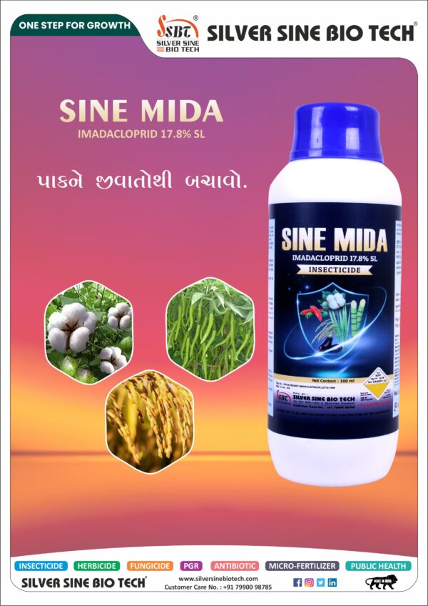 DESCRIPTION: SINE MIDA Is A Systemic Insecticides Of Neonicotinide Group Which Control The Sucking Insects And Termites Very Effectively. It Is An Antagonist By Binding To Postsynaptic Nicotinic Receptors In The Insect Central Nervous System.