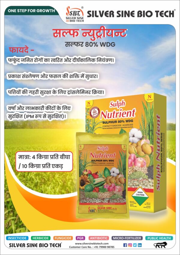- SULPH NUTRIENT (Sulphur 80% WDG)is A Dust Free, Flowable Micronised Sulphur Granules, Ease Of Measuring & Handling..