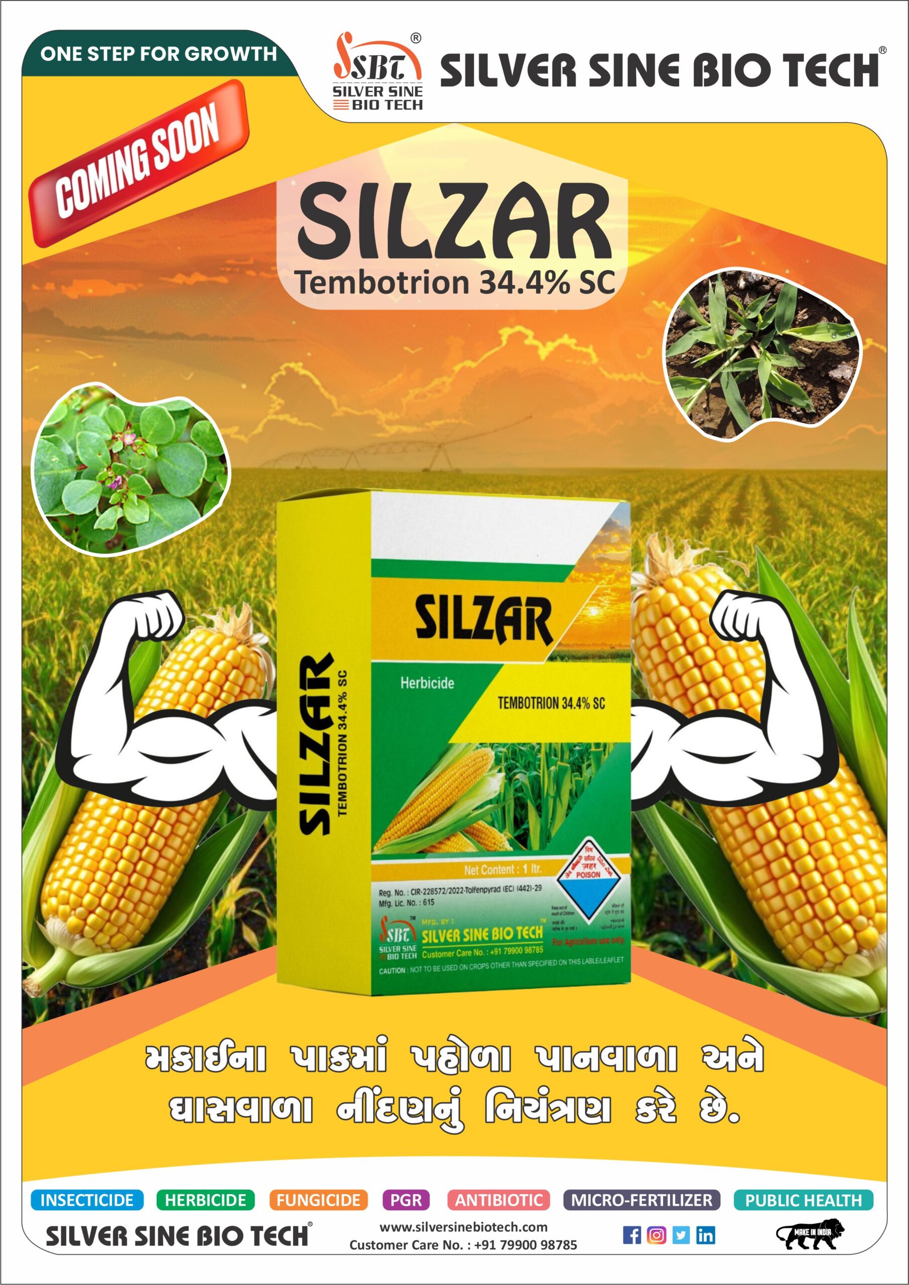 Tembotrione 34.4% SC is a selective post-emergence herbicide widely used in maize. It provides excellent control of broadleaf and grassy weeds, ensuring cleaner fields and improved crop establishment.
